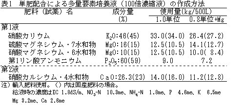 | [キーワード] | 米ナス、ロックウール栽培、単肥配合、マグネシウム欠乏、培養液処方 |