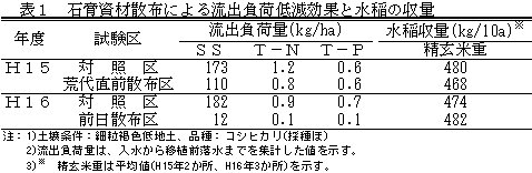 | [成果情報名] | 石膏資材施用による水稲代かき時期の農業濁水発生軽減 |