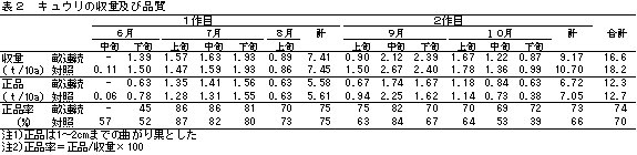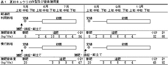 | [成果情報名] | 夏秋キュウリの畝連続利用かん水同時施肥栽培による施肥削減 |