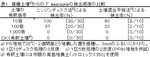 | [成果情報名] | ニンジンディスクによるスミレ類根腐病菌の簡易土壌検診法 |