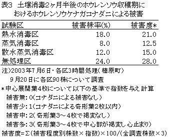 | [成果情報名] | 数種土壌消毒法によるホウレンソウケナガコナダニの防除 |