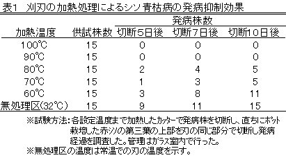 | [成果情報名] | シソ青枯病の二次伝染を抑制できる刈刃加熱装置の開発 |