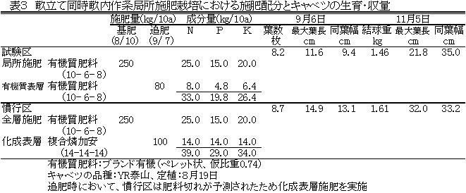 | [キーワード] | キャベツ、畝内局所施肥 |