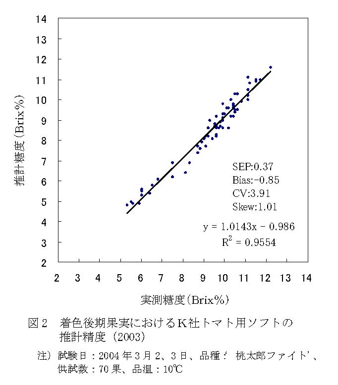 | [キーワード] | 携帯型、非破壊糖度計、推計ソフト、高糖度トマト、着色前期、着色後期 |