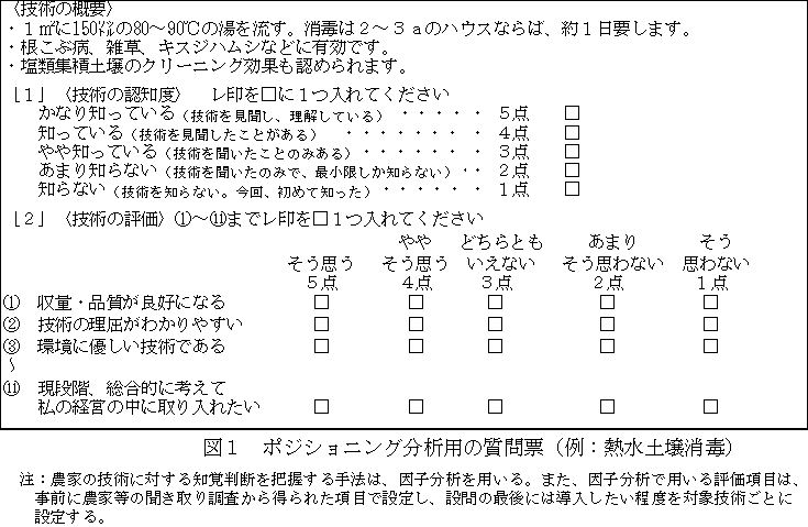 | [成果情報名] | ポジショニング分析による農家の技術導入条件の可視化 |