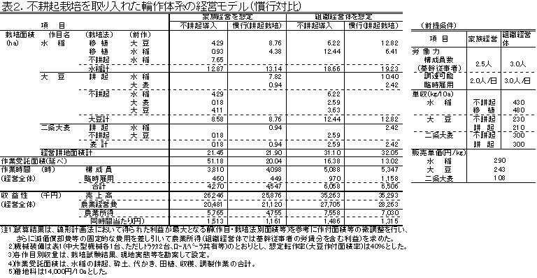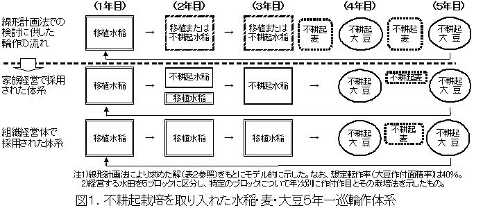 | [成果情報名] | 不耕起栽培を取り入れた水稲・麦・大豆5年一巡輪作体系の経済性 |