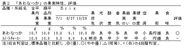 | [成果情報名] | 夏秋どりに適したイチゴ新品種「あわなつか」 |