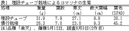 | [成果情報名] | 液肥混入式土壌埋設点滴チューブによるコマツナの高品質安定生産 |