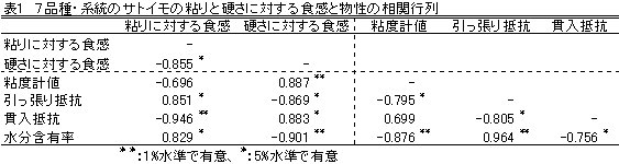 | [成果情報名] | サトイモの粘りと硬さに関する評価法と品種・系統間差 |