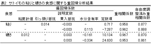 | [キーワード] | サトイモ、食感、粘り、硬さ |
