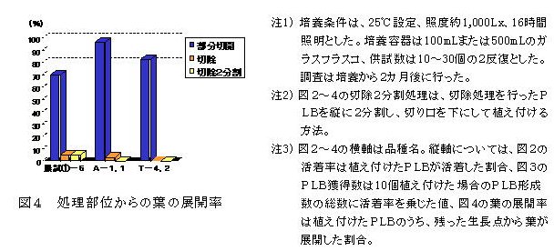 | [成果情報名] | ファレノプシスのPLBは生長点付近の部分切開処理で効率的に増殖する |