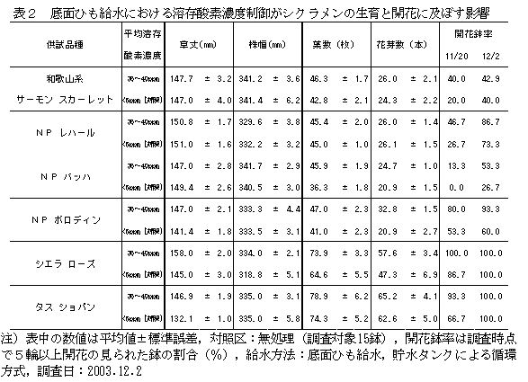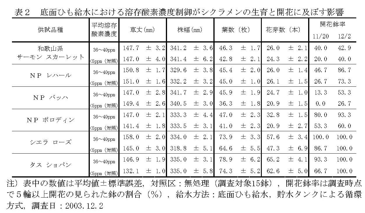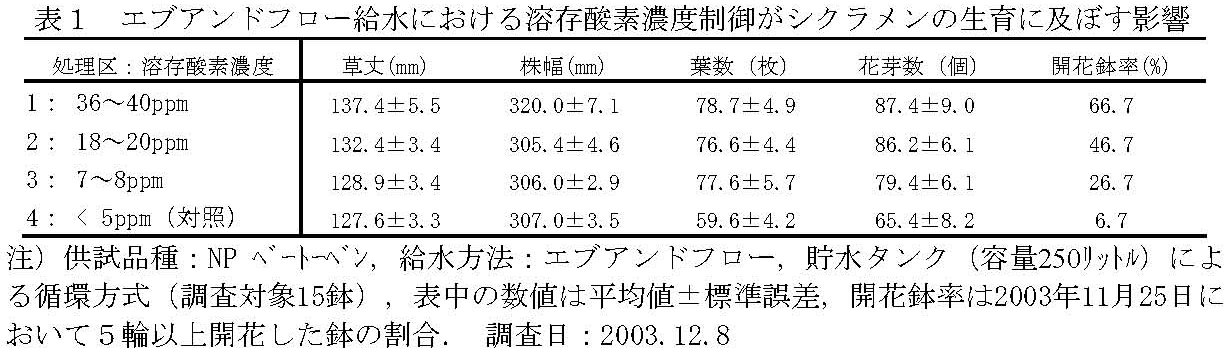 | [成果情報名] | 鉢花シクラメン栽培における給水時の溶存酸素濃度制御 |