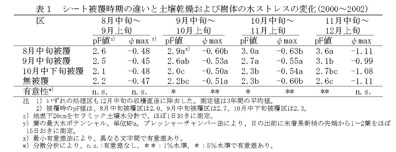 | [要約] | 「トサブンタン」の樹冠下の地表全面を8月中旬から11月中旬まで白色透湿性シートで被覆することで、糖度が高く、果皮色が良好な果実を生産できる。 |