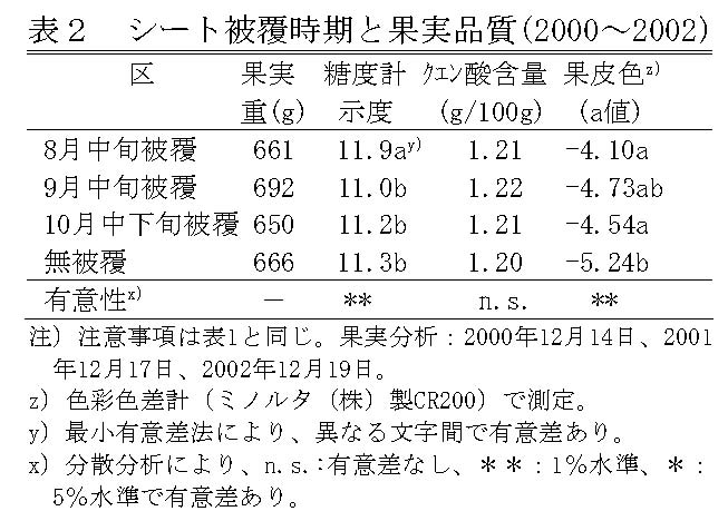 | [成果情報名] | シートマルチ栽培による「トサブンタン」の高糖度果実生産 |