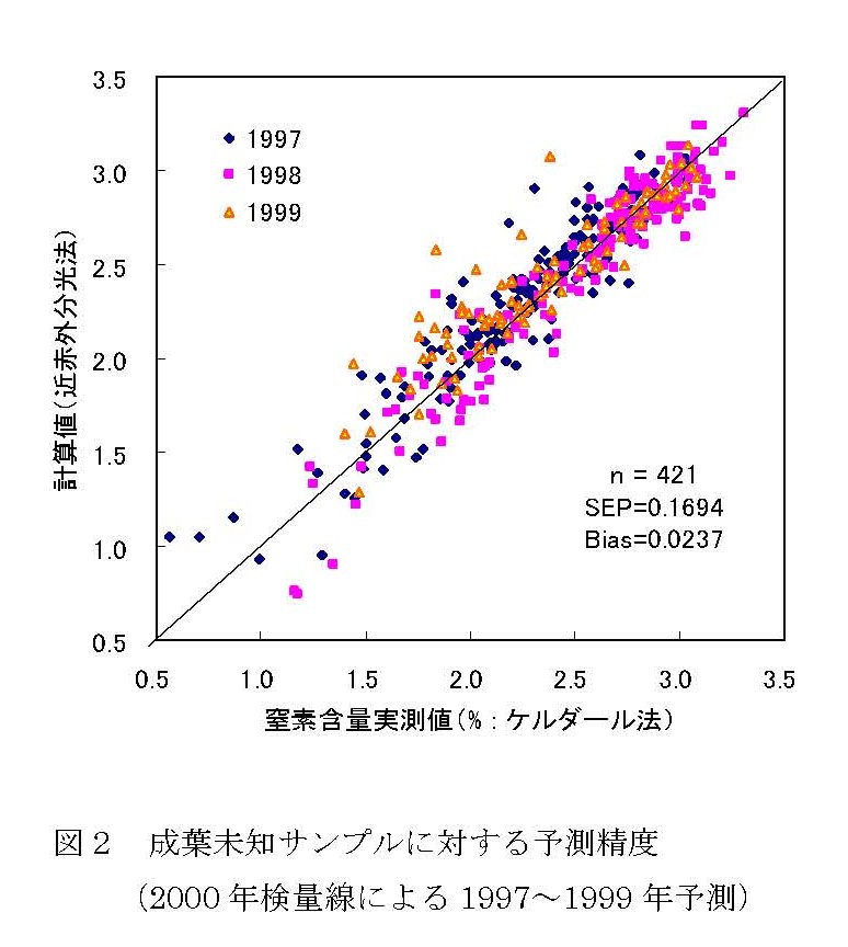 | [成果情報名] | 近赤外分光法によるウンシュウミカン成葉の窒素含量測定法 |