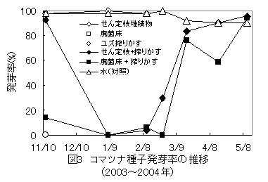 | [要約] | 堆肥舎内で腐熟途中のカンキツせん定枝堆積物やシイタケ廃菌床にユズ搾りかすを 1/2重量比混合し5~6か月堆積することにより、ユズ搾りかすの堆肥化が可能である。 |