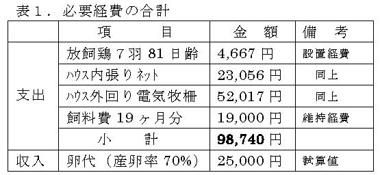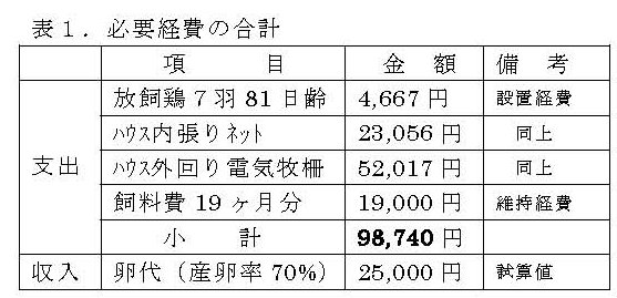 | ウ) | 7羽が排出する生鶏糞量は約24kg/月で、施肥効果が期待された。 |