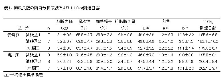 | [成果情報名] | バークシャー種における赤肉生産量の向上のためのLysine/ME比の検討 |