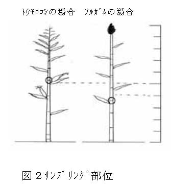 | [要約] | 汁液診断によるトウモロコシ・ソルガムの硝酸態窒素含量推定では個体間差や部位別の蓄積の偏りが問題となる。この技術はこれらの誤差を軽減し、手順を簡易化するため、茎の特定節を用いた、少量サンプルによる安全性判断法と、推定値算出法で構成される。 |