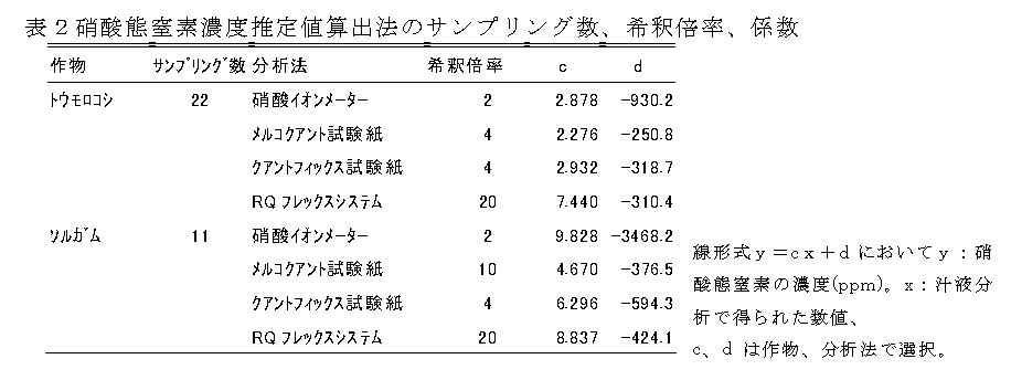 | [成果情報名] | トウモロコシ・ソルガムの硝酸態窒素濃度簡易測定技術 |