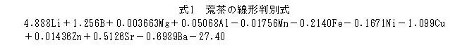 | [要約] | 粉末化された煎茶とてん茶(抹茶)は形状が類似しているが、11元素(Al、B、Ba、Cu、Fe、Li、Mg、Mn、Ni、Sr及びZn)を用いる線形判別式により両者の判別が可能である。 |