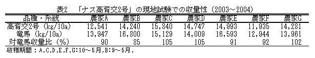 | [成果情報名] | 高知ナス新系統「ナス高育交2号」 |