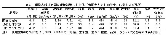 | [成果情報名] | 極早生水稲新品種「南国そだち」 |