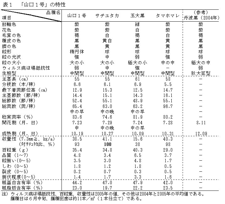 | [成果情報名] | 黒大豆新品種「山口1号」 |