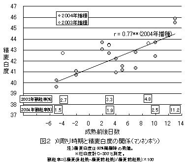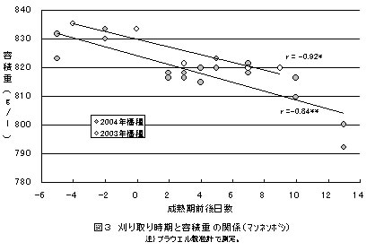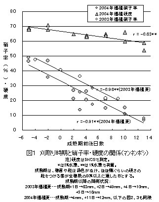 | [成果情報名] | 裸麦「マンネンボシ」の刈取り時期による品質変動 |