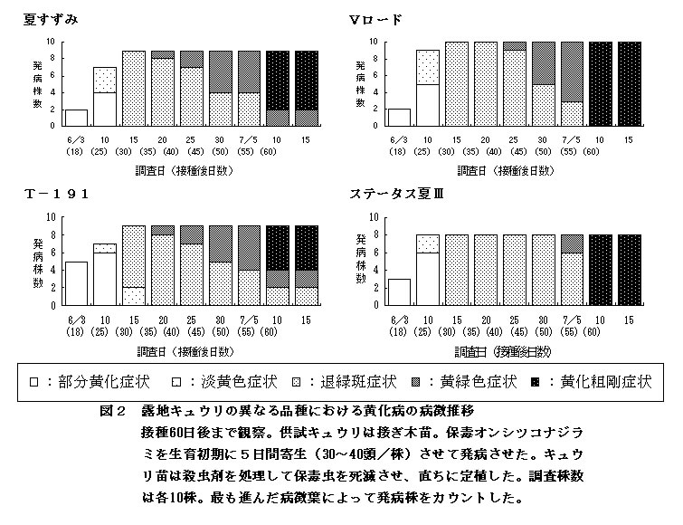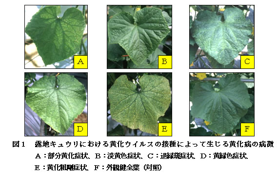 | [成果情報名] | キュウリ黄化ウイルスが生育初期に感染した露地キュウリにおける病徴推移 |