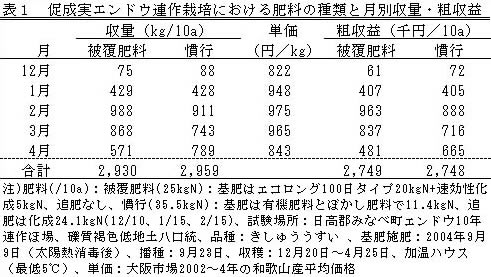 | [成果情報名] | 促成実エンドウにおける被覆肥料を用いた施肥量削減 |