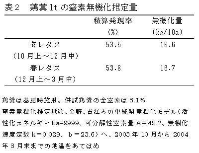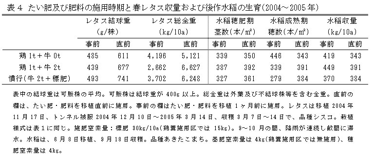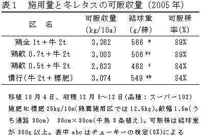 | [成果情報名] | ペレット鶏糞を用いた水稲後作冬春レタスの50%減化学肥料栽培 |