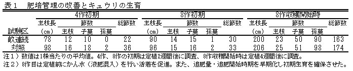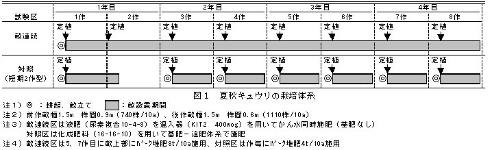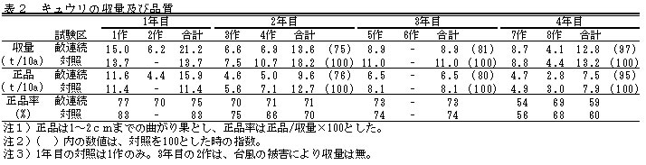 | [成果情報名] | 夏秋キュウリの畝連続利用(8作)栽培技術 |