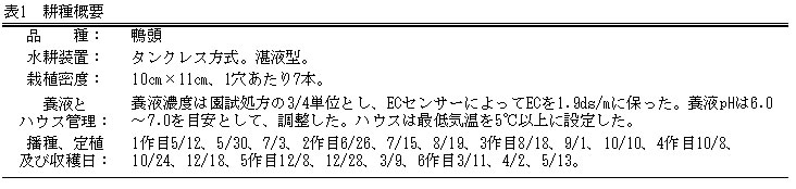 | [キーワード] | ネギ、水耕栽培、湛液深、養液、廃液量削減、肥料 |