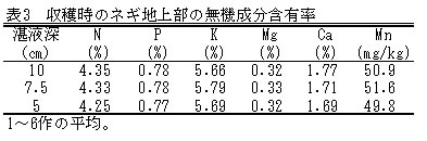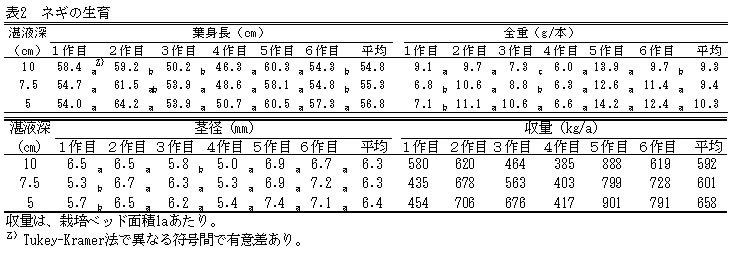 | [成果情報名] | ネギの湛液型水耕栽培における湛液深低減による廃液量の削減 |