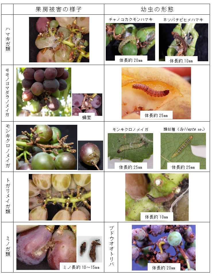 | [成果情報名] | ブドウの減農薬栽培で問題となる鱗翅目害虫の見分け方 |