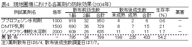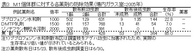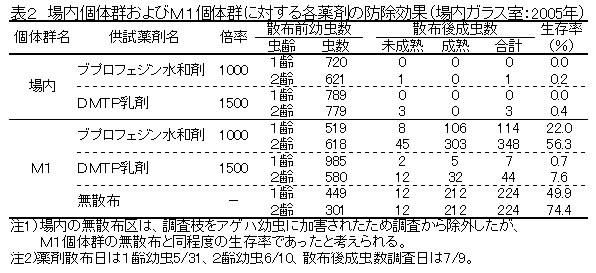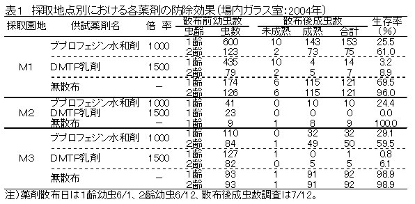 | [成果情報名] | 基幹薬剤に対して防除効果が低下したヤノネカイガラムシの出現と代替剤 |