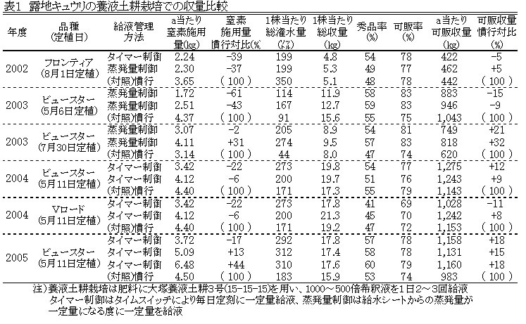 | [成果情報名] | 露地キュウリは養液土耕の導入により、収量を維持しながら化学肥料を3割削減できる |