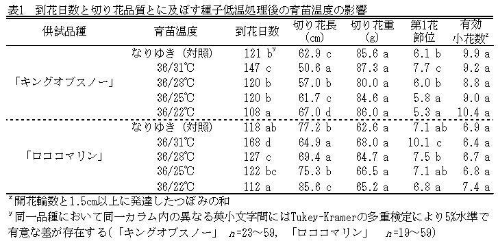 | [成果情報名] | トルコギキョウのロゼット化防止に有効な種子低温処理後の育苗夜温 |