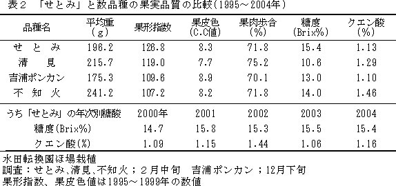 | [成果情報名] | 高糖度で特徴的な食感の、中晩生カンキツ新品種「せとみ」の特性 |