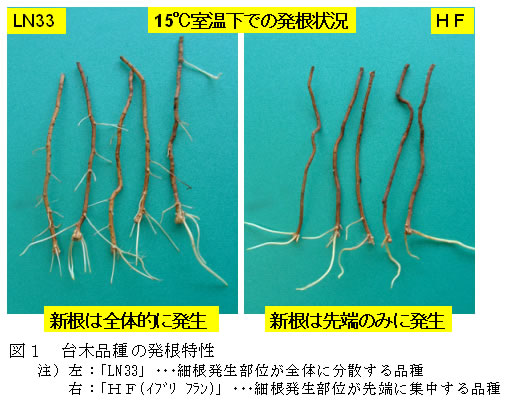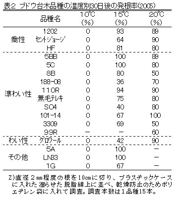 | [成果情報名] | ブドウ「デラウェア」の加温栽培向き台木品種 |
