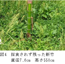 | [要約] | 春先の発筍(タケノコが地上に現れること)の時期に豚を竹林へ放牧すると、タケノコを好んで採食するため、新竹の発生を抑えることが可能である。放牧は、発筍前から発筍時期が終了するまでの期間に実施すると効果的である。 |