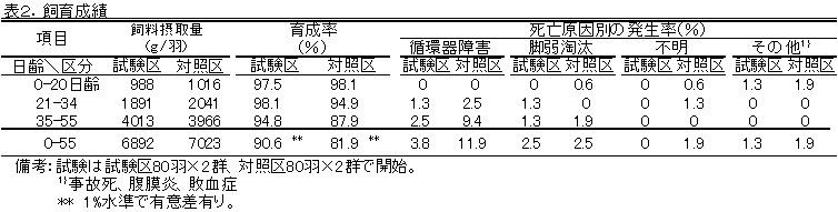| 研究課題名 | : | ブロイラー飼料比較給与試験 |