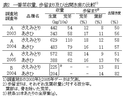 | [成果情報名] | 煎茶用品種「さえみどり」のてん茶(自然仕立て)栽培特性 |