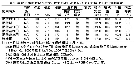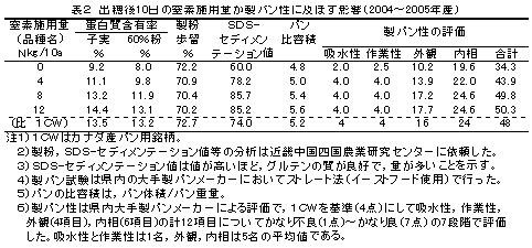 | [成果情報名] | 小麦「ミナミノカオリ」の製パン性を高める実肥の施用時期と適正窒素量 |