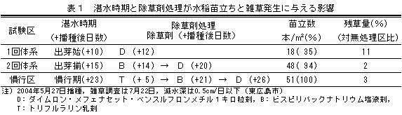 | [要約] | 飼料用稲「クサノホシ」を乾物収量1.2t/10a以上得る省力的な栽培法は、乾田直播で牛糞堆肥を5t/10a、被覆尿素肥料をN8kg/10a施用し、鳩胸状態の催芽籾8kg/10a(乾籾換算)を散播して浅耕し、走り水を行い、出芽揃後に湛水し、除草剤を2回施用する体系で行う。 |
