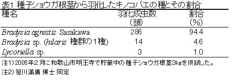| [成果情報名] | ショウガの貯蔵害虫チビクロバネキノコバエの防除対策 |