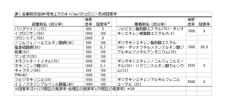 | [成果情報名] | 昆虫病原糸状菌Nomuraea rileyiと混用可能な殺菌剤、展着剤の選定 |