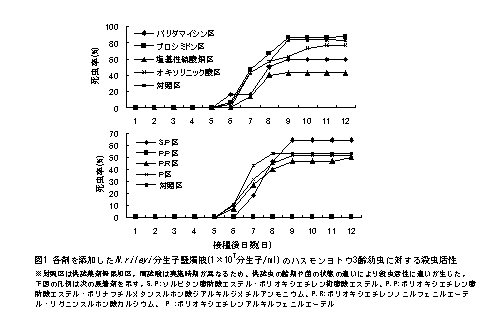 | [要約] | 殺菌剤のオキソリニック酸、プロシミドン、展着剤のソルビタン脂肪酸エステル・ポリオキシエチレン 樹脂酸エステル、ポリオキシエチレンノニルフェニルエーテル・リグニンスルホン酸カルシウム、 ポリオキシエチレンアルキルフェニルエーテルは、昆虫病原糸状菌Nomuraea rileyiと混用しても、 ハスモンヨトウに対する殺虫活性を低下させない。 |