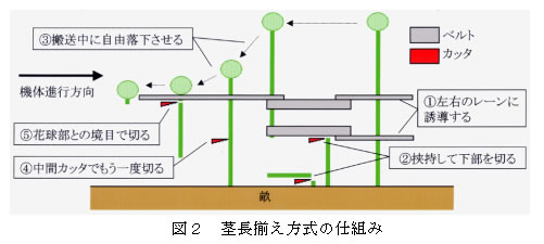 | [要約] | 本機は、畝立て栽培した採種用タマネギの花球を収穫する機械である。余分な茎部を段階的に 切除しながら搬送することにより、草丈のバラツキに関係なく、採種に必要な花球部のみを効率的に刈り取り、 コンテナ収納できる。作業能率は1.88人・h/10aである。 |